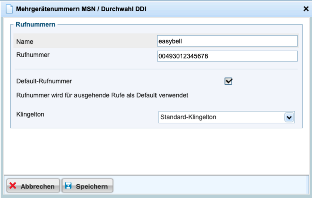| Name (frei wählbar) | bspw. „easybell“ | bspw. „Cloud Telefonanlage“ |