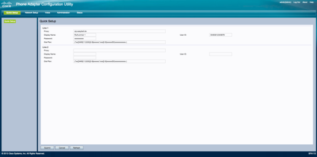 Unter „Quick Setup“ können Sie direkt die Rufnummer konfigurieren.