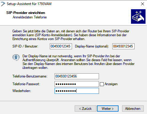 Weitere Informationen unter „Wo finde ich meine SIP-Zugangsdaten?“.