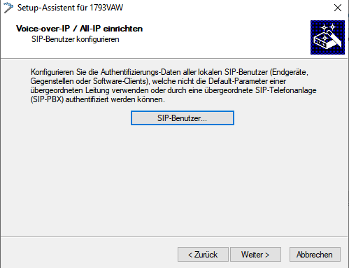 10. Als nächstes erscheint die Seite für die Einrichtung der einzelnen SIP-Benutzer. Die dort festgelegten Zugangsdaten tragen Sie später in Ihre Telefone ein. Um diese anzulegen, klicken Sie auf „SIP-Benutzer“ und wiederholen Sie die anschließenden Schritte für jeden Benutzer.
