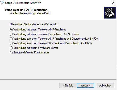 2. Anschließend werden Sie nach dem Voice-over-IP-Szenario gefragt. Hier wählen Sie „Benutzerdefinierte Konfiguration“ aus und klicken erneut auf „Weiter“.