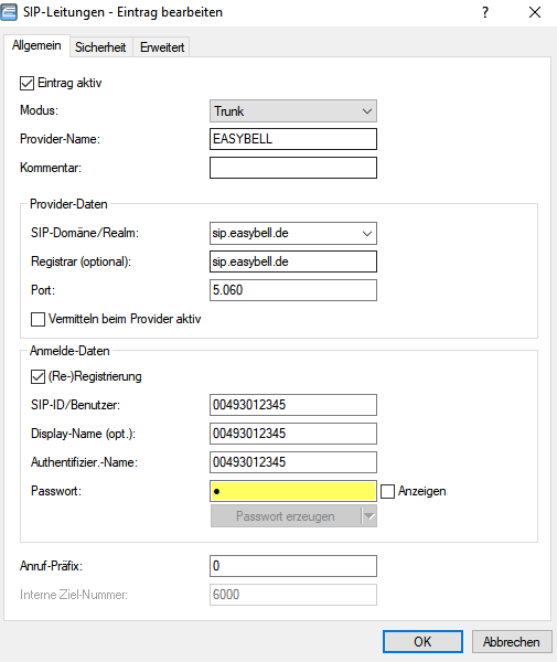 - Rufnummern-Länge: Dieses Feld lassen Sie auf der Standardeinstellung „0“ stehen.