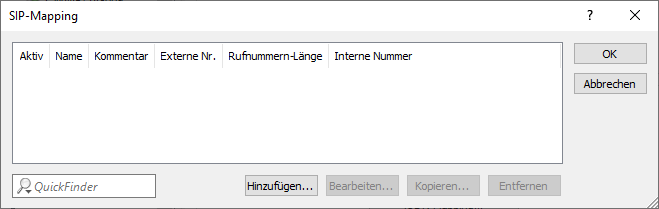 25. Nun nehmen wir die Einstellungen für das SIP-Mapping im Router vor. Wählen Sie dazu bitte „SIP-Mapping“ auf der gleichen Seite (Voice Manager -> Leitungen) aus. Wenn Sie den Punkt angeklickt haben, öffnet sich eine Übersicht der eingerichteten SIP-Mappings. Es sollten mindestens die beiden Einträge für die Zentrale und Catch-All vorgenommen werden. Klicken Sie dazu bitte auf „Hinzufügen“.