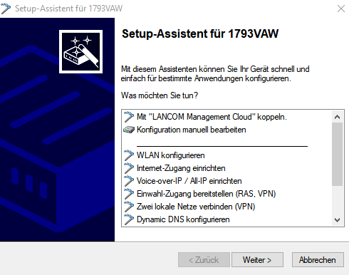 Bei dieser Einrichtung wird die LANconfig-Software von LANCOM verwendet. Diese wird für die Konfiguration aller LANCOM-Routermodelle verwendet und ist im Downloadbereich des Herstellers erhältlich.