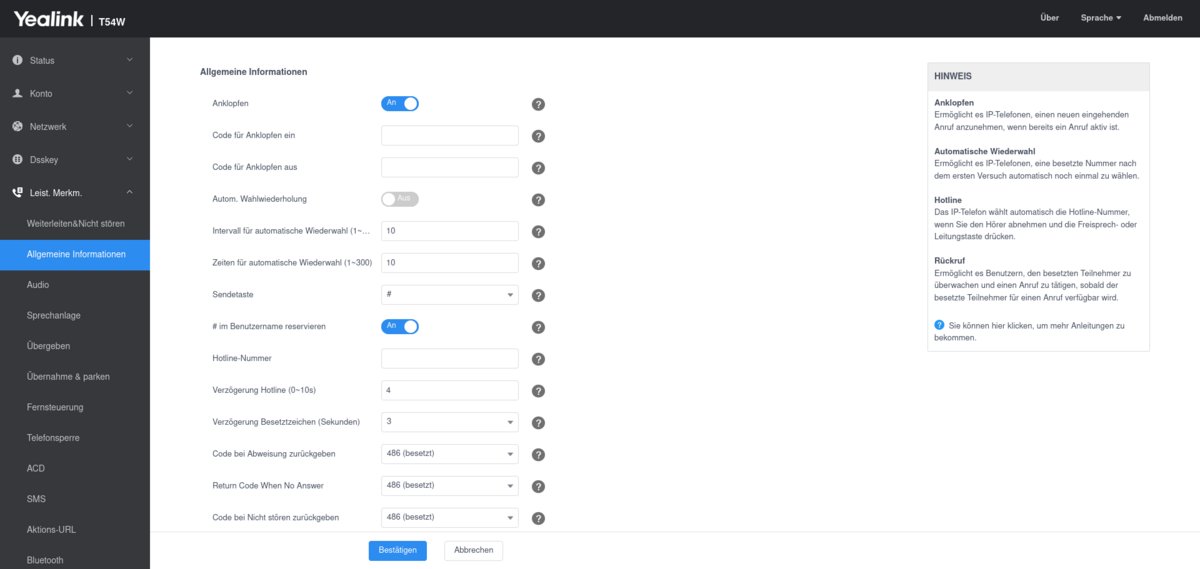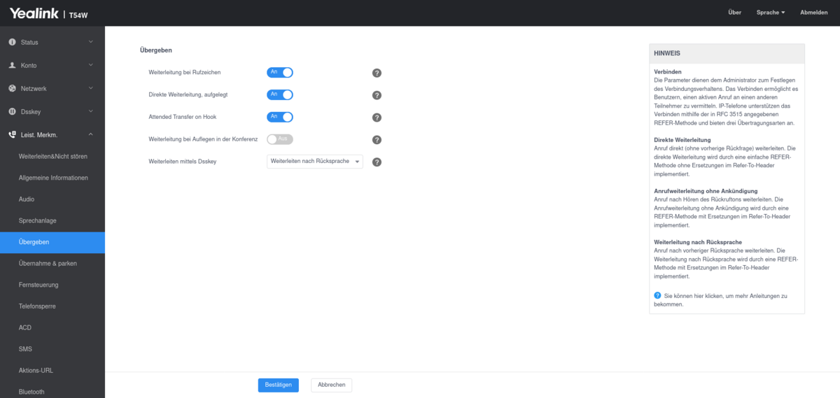 Bitte speichern Sie die Einstellungen anschließend mit „Bestätigen“.