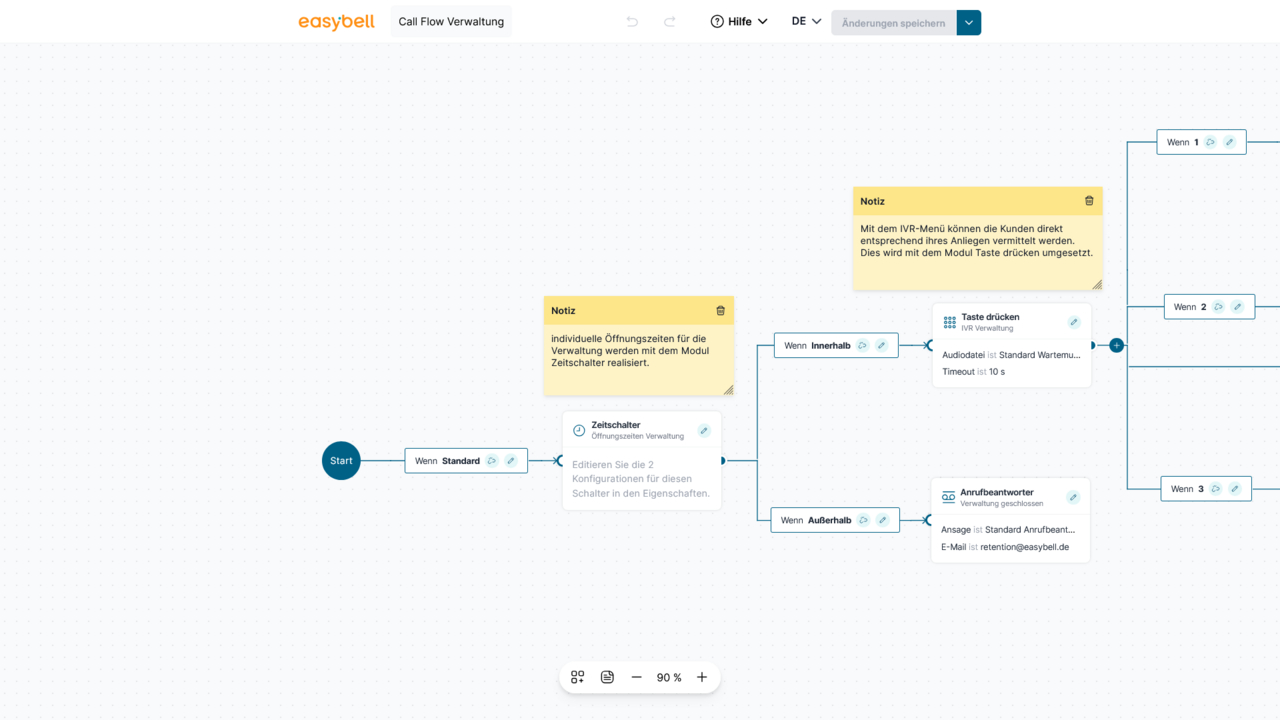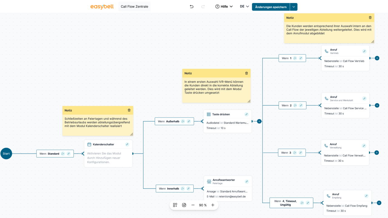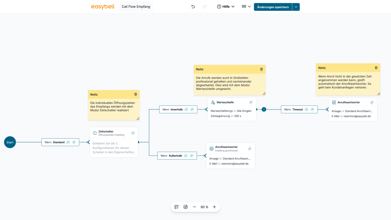 Ein weiterer zentraler Bestandteil ist die automatisierte Zeitsteuerung, die Ansagen und Rufumleitungen basierend auf Pausen, Feiertagen und den Öffnungszeiten der verschiedenen Abteilungen steuert.